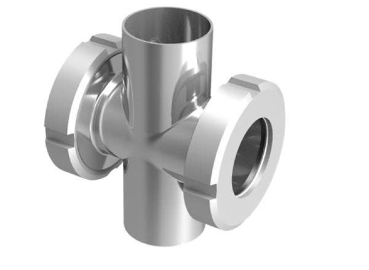 Kính quan sát Sanitary Tri-Clamp Cross này được chế tạo từ thép không gỉ SS316 để tăng độ bền. Nó có thiết kế tri-clamp kèm cửa sổ kính, giúp dễ dàng quan sát chất lỏng bên trong.
