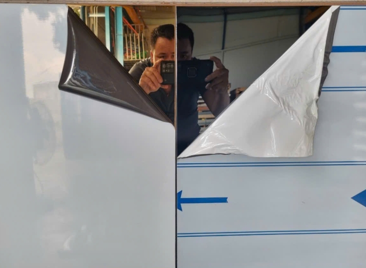 Tấm inox gương đen bóng 8k chất lượng cao bao giờ cũng được dán 2 lớp keo bảo vệ bề mặt khỏi hư hỏng và tốt nhất là 1 lớp dùng cho máy Laser và 1 lớp pvc thường, tất cả đều có độ dày 80-100Micron.